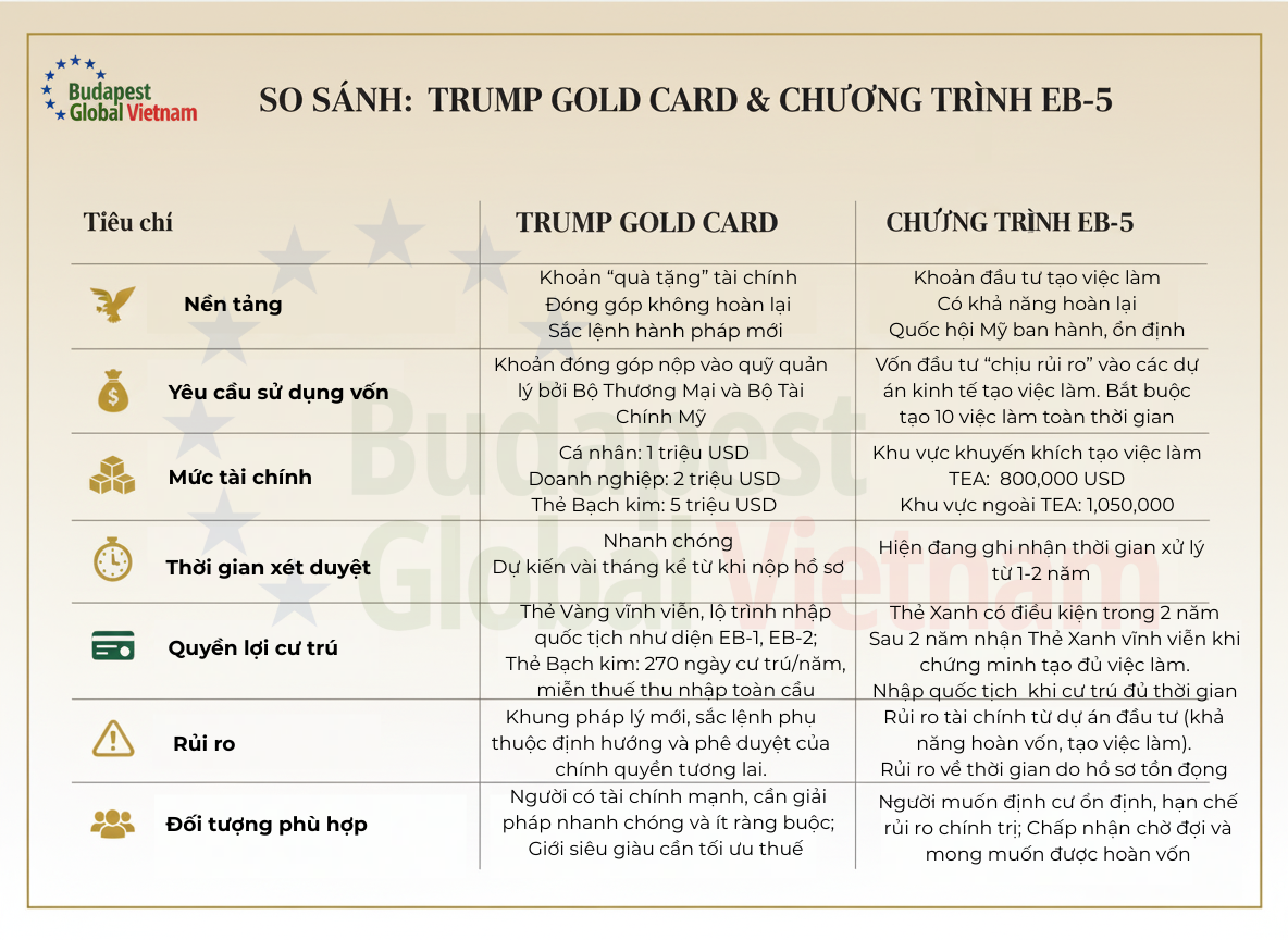So sánh Trump Gold Card và chương trình EB-5
